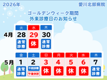 2026年 ゴールデンウィーク期間中の外来診療日についてお知らせいたします。